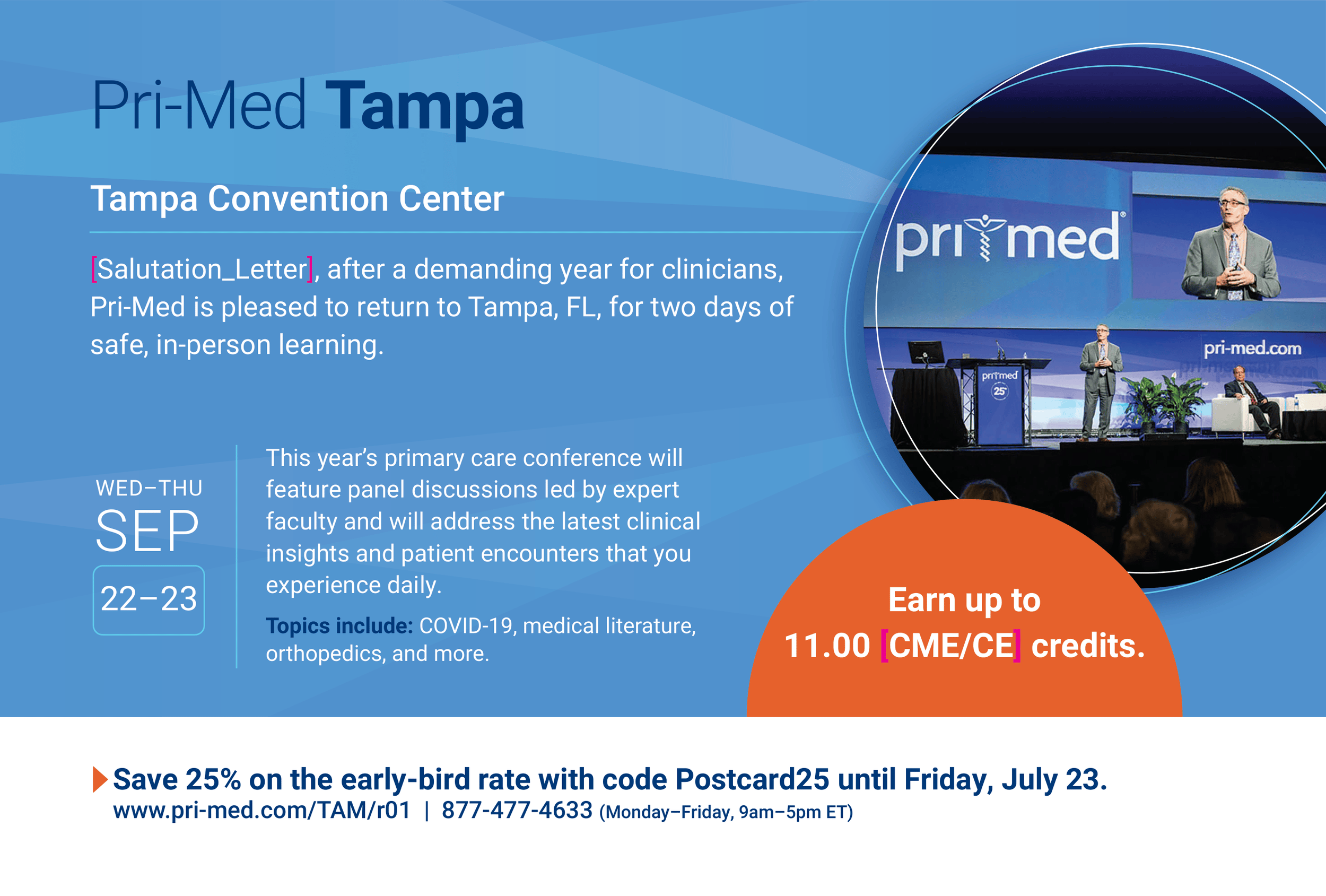 Pri-Med provides primary care clinicians with accessible, practical, and relevant continuing medical education (CME/CE) to improve knowledge, boost confidence, and contribute to better patient outcomes.