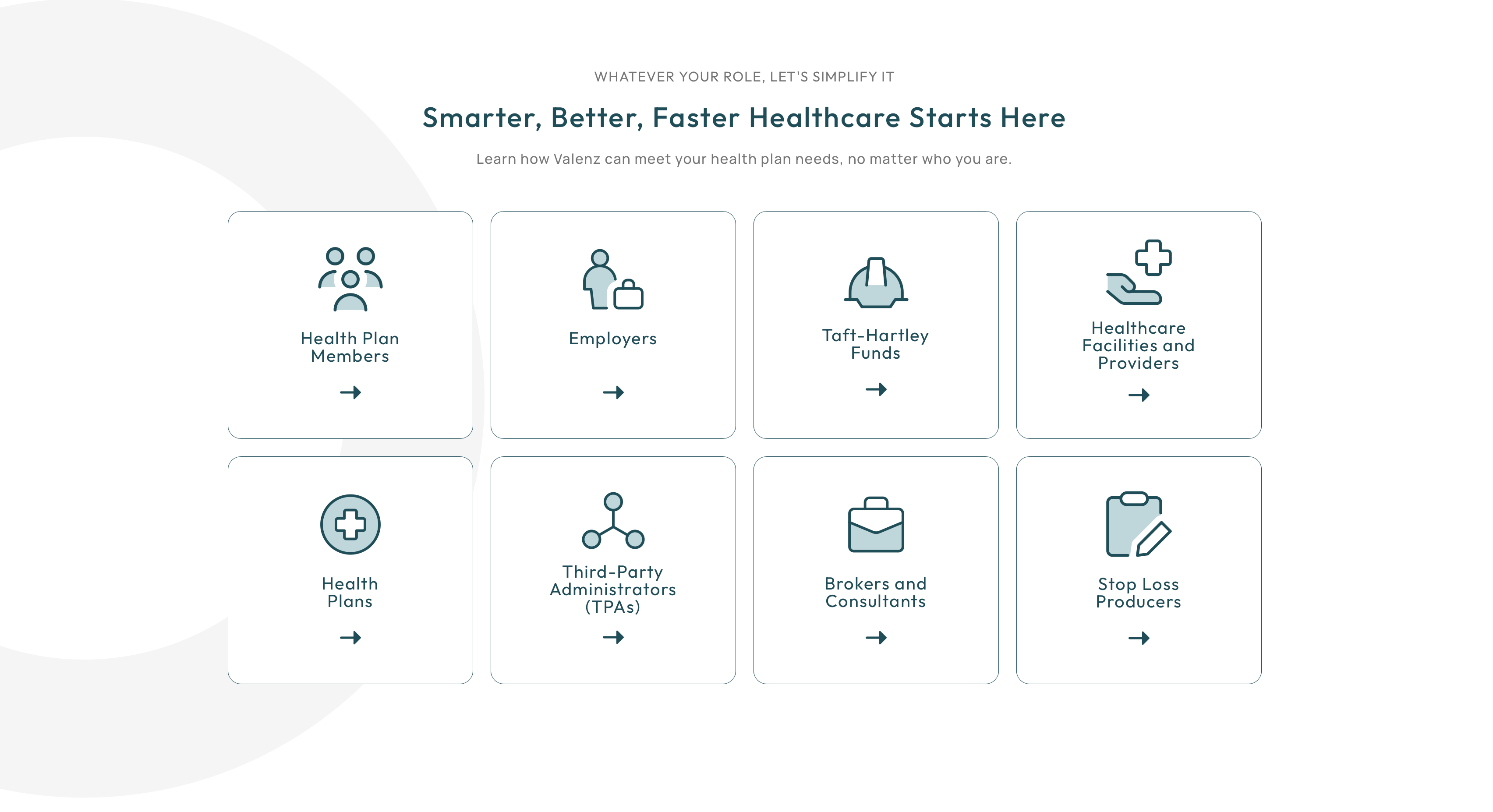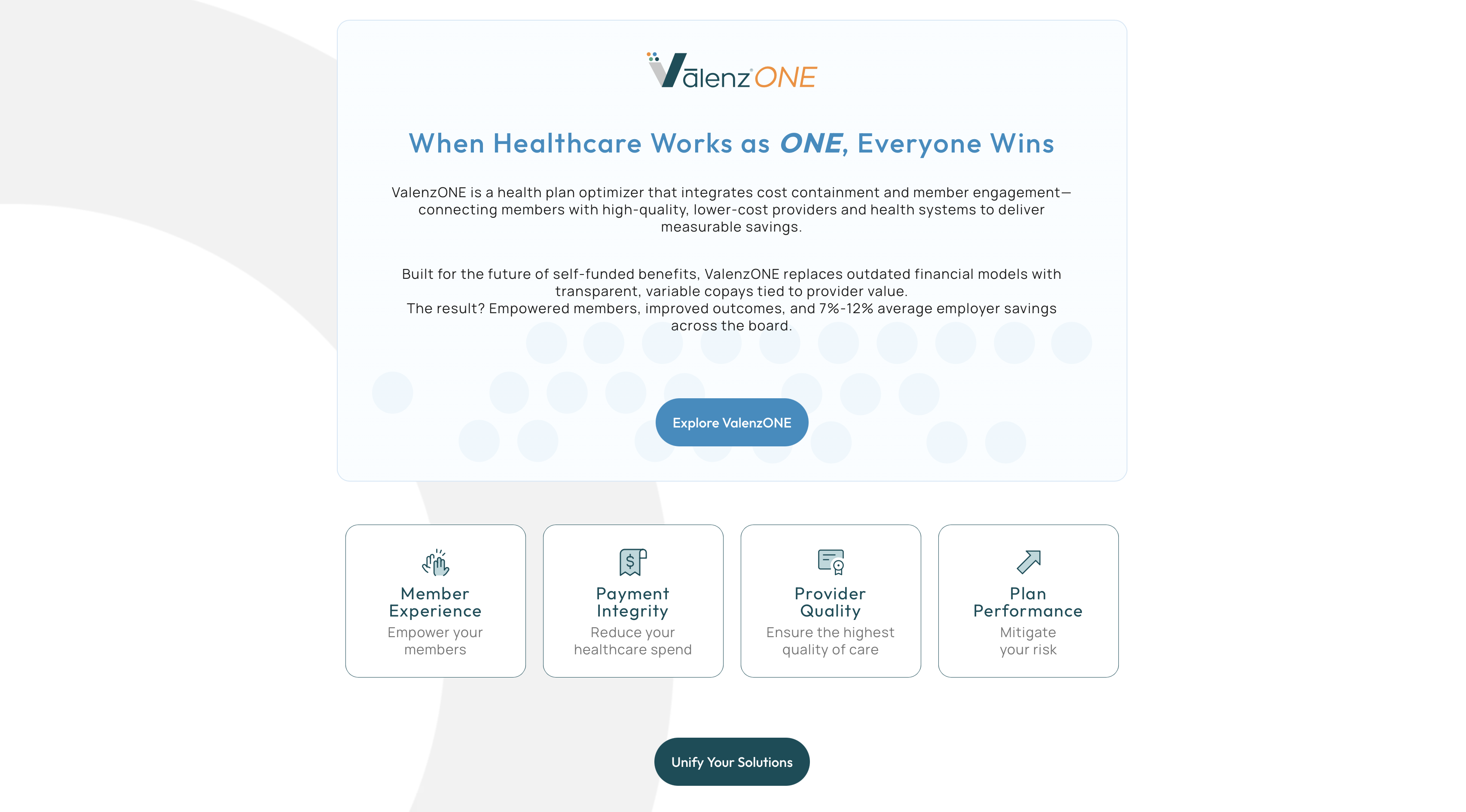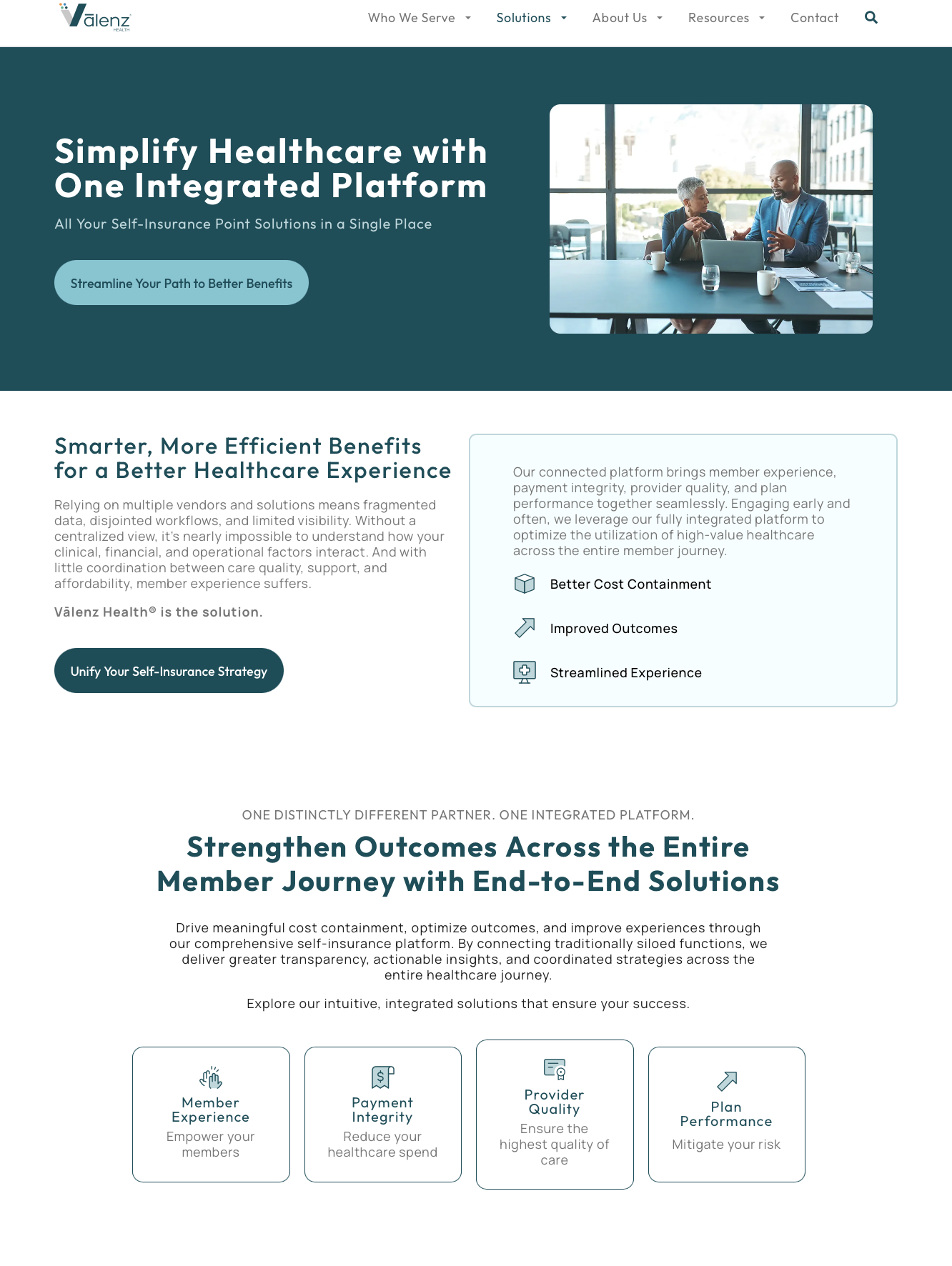 Valenz Health is the platform to simplify healthcare, leveraging a fully integrated solution suite that executes across the entire patient journey, from member experience to payment integrity, provider quality, and plan performance.